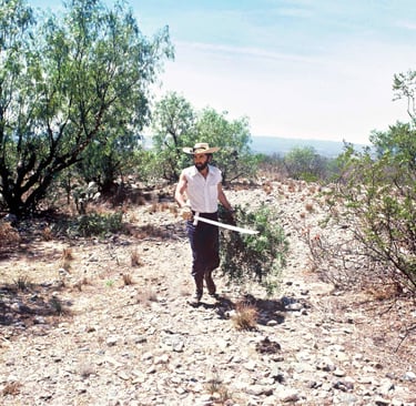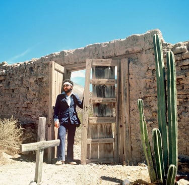 El trayecto fue áspero, era necesario constante esfuerzo para no resbalar sobre aquellas agudas piedras limadas por las centurias. Conforme me introducía al desierto, el silencio parecía aplastarme. Me sentía diminuto en medio de aquellas montañas erosionadas, altas como mis temores. Hirsutos arbustos sobre la ardiente grava se alzaban retándome a continuar. El cielo era azur añil intenso, impecablemente inmisericorde, carente de vapor en su semblante, egoísta para prodigar alguna reconfortante sombra. Arribé a un deprimente caserío. Todo estaba cubierto de polvo, las casas, los magueyes, los perros, los rebozos de las mujeres, y los sombreros de los hombres. En un diminuto estanquillo pedí cerveza obscura, el hombre tras el mostrador me extendió una botella al tiempo, me dijo que no la bebiera fría para evitar los retortijones, de todos modos aquí no hay refrigeradores, agregó. Pensé que se burlaba al reconocer mi facha de inexperto citadino, sin embargo, hablaba con buena intención; afuera el calor masticaba a la monotonía. Algunos niños se acercaron curioseándome sin el menor recato. Mirando la mochila colgada a mi espalda, uno de ellos preguntó: ¿ Qué tanto carga ahí ?. Tones para los preguntones, respondí. Sus amigos jocosamente se retorcieron en chimuelas carcajadas. Con un susurro, le pregunté al hombre tras el mostrador, si acaso conocía a alguien que me vendiera peyotito. Después de una propina, accedió a darme discretamente las señas para hallar determinada casucha, a la cual hallé siguiendo una callejuela tan angosta como las posibilidades de progreso en mi México. Los transeúntes que pasaban a mi lado eran marchitas figuras de reseca resignación, desprovistos de humanidad, prematuros residuos carentes de vida en sus entrañas. Los individuos portaban sombreros ajados por el aburrimiento, las mujeres carecían de mirada, sus rostros eran de piedra piel frustrada, andaban con una mano sujetando ya fuera a un escuálido hijo desnudo de la cintura para abajo, o llevando del brazo una canasta de granulada desilusión, sin excepción, todas ellas se tapaban la nariz con su rebozo para no aspirar la tierra levantada por el impertinente vientecillo.
