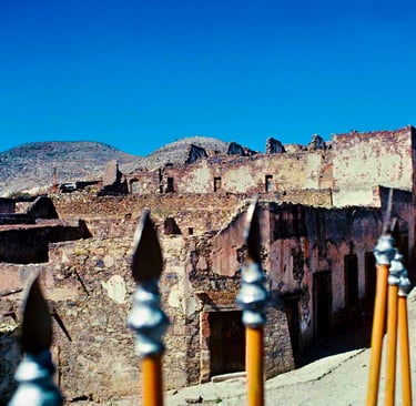 鉱物資源が枯渇し、人々は空っぽのポケットと擦り切れた希望を手に、村を去った。残された家々は貧困に呑まれ、屋根が崩れ、無情にも時間に放置されていた。裸の壁や倒れた塀は、まるで巨大で古びた動物の骨のように見え、そこに閉じ込められた痛みが語りかけてくる。